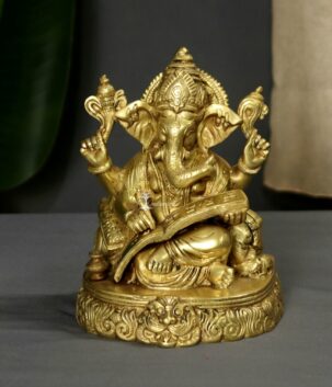 Brass Lord Ganesha Statue Writing Mahabharata…For Home & Gifting