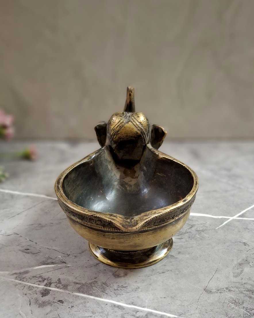 Brass Elephant Diya(Vilaku) Vintage Look.