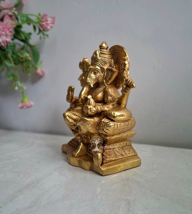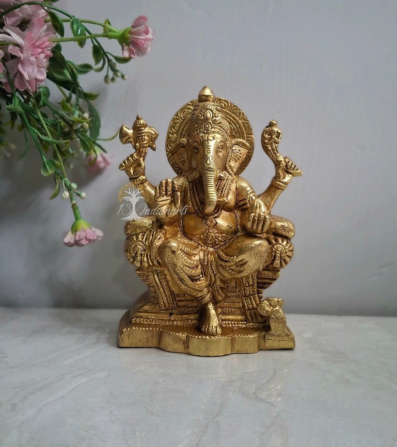 Introducing the exquisite Raja Ganesha Brass Statue, a perfect blend of art and devotion. Made of high-quality brass, this stunning brass Ganesh murti captures the divine spirit of Lord Ganesha. Whether as a brass Ganesh idol for your home or a thoughtful gift, this statue radiates grace and blessings. The intricate craftsmanship and polished finish make this brass Ganesha statue a stunning addition to any decor. Enhance your spiritual space with this elegant Ganesh statue, symbolizing wisdom and prosperity. Ideal for worship or decor, this brass Ganesh statue is a timeless piece of spiritual art.