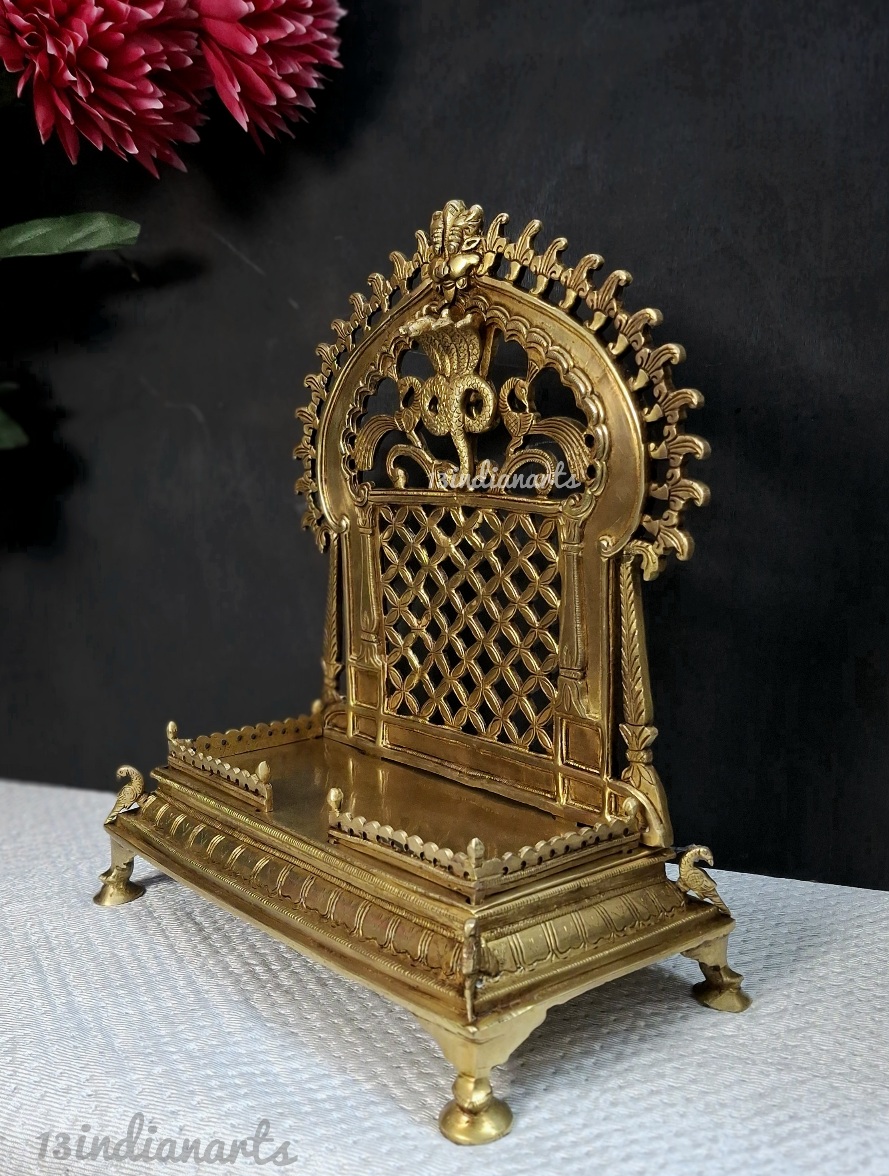Crafted from solid brass, this piece adds a royal and spiritual touch to your pooja space, making it perfect for placing your deity with grace and respect,