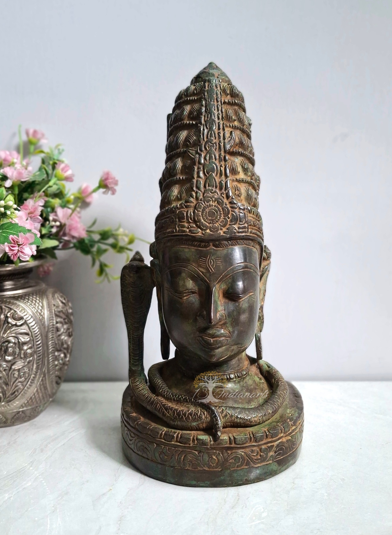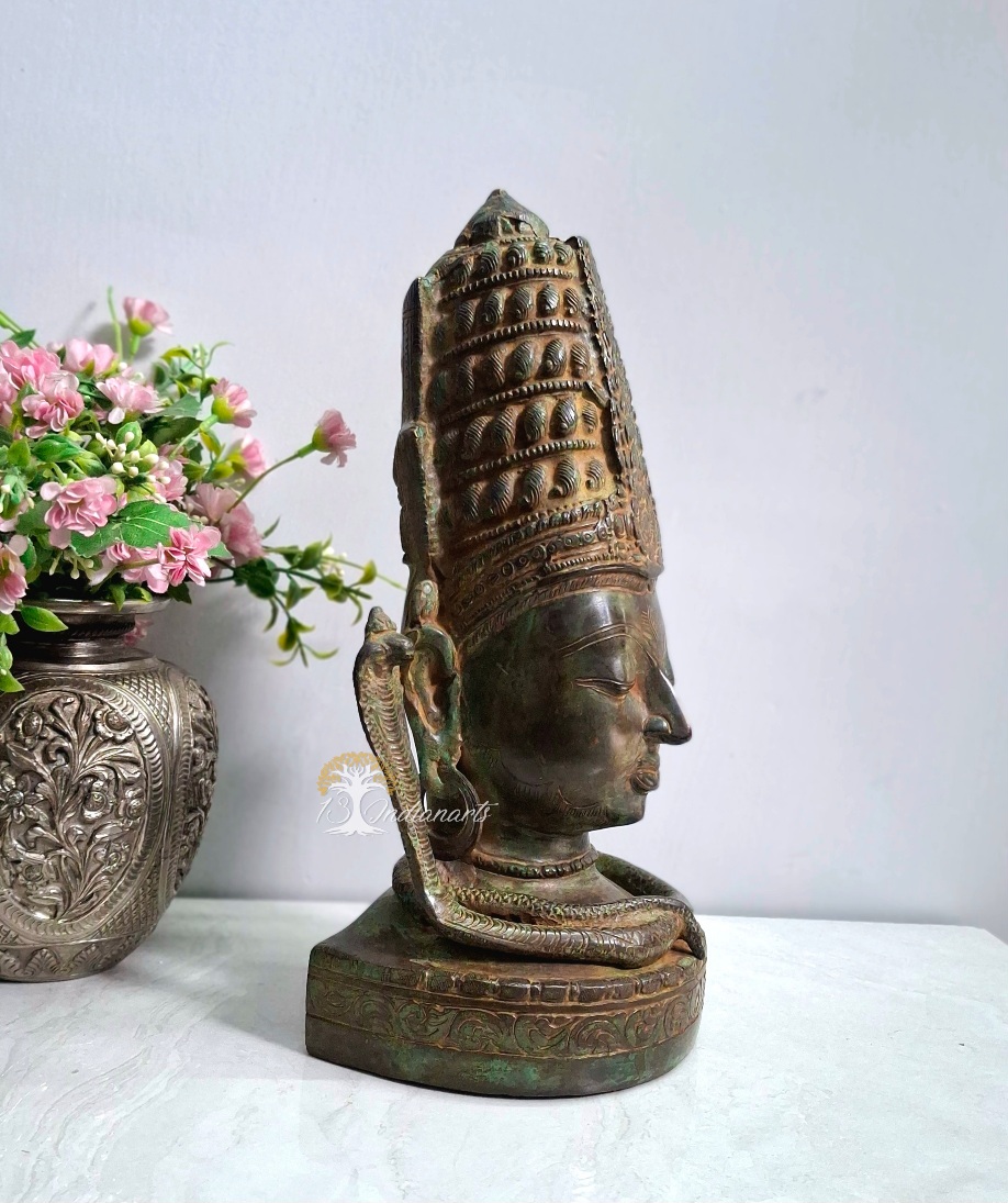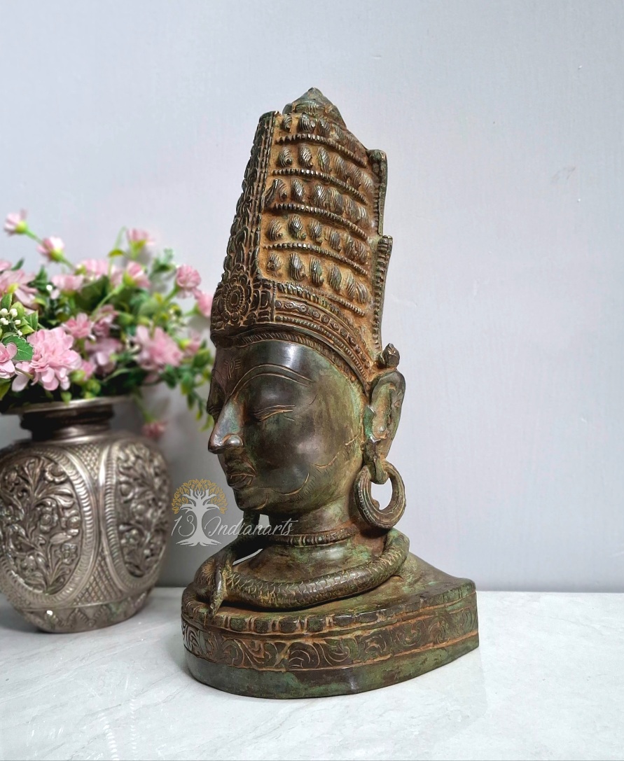 Bring the divine presence of lord shiva into your space with this pure brass Face bust,featuring antique patina…
