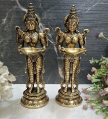 The craftsmanship of this statue is likely to be intricate, with attention to detail in the design of Krishna’s attire, the serpent’s scales, and the overall composition. The use of brass as the medium adds to the statue’s elegance and durability.